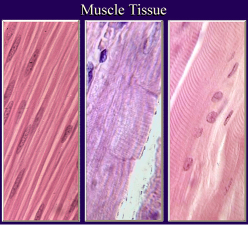 Function → movement Location → attached to bones, in the walls of hollow internal organs, heart