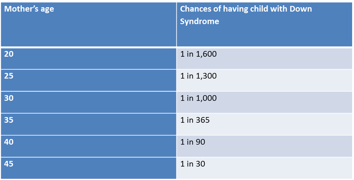 Advancing maternal age. \\ Having had one child with Down syndrome.