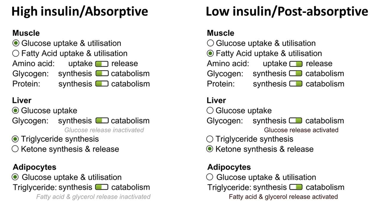 Glycogenesis Glycolysis Lipogenesis Protein synthesis
