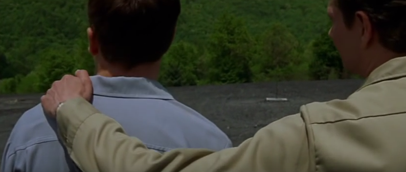 Mid shot of John's hand on Homers shoulder to show support and there equal and healed relationship