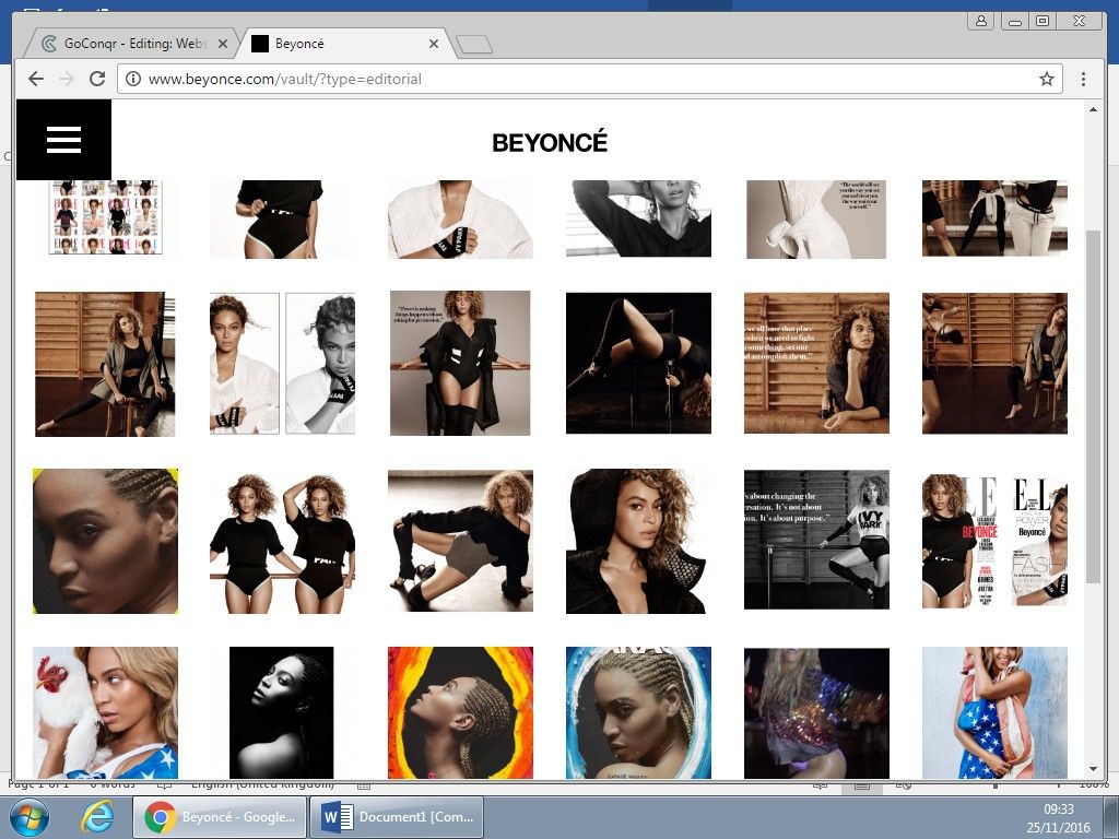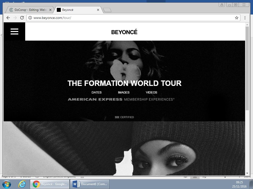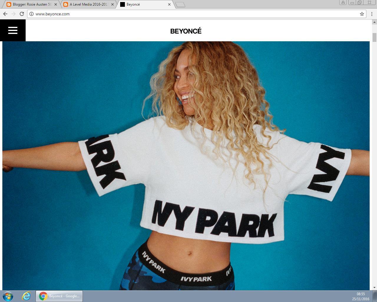 Beyonce's cover page of her website is very simple. It has her
