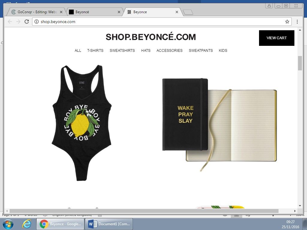 website where they can buy a multitude of Beyonce merchandise