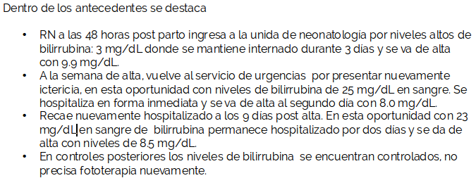 especificando que para que esta condición se presente tiene que existir un nivel de bilirrubina en sangre de