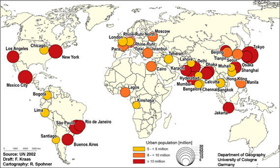 Some world cities are also mega cities. These