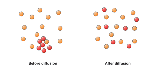 Diffusion is the spreading out of particles from an area of high concentration to an area of a low concentration