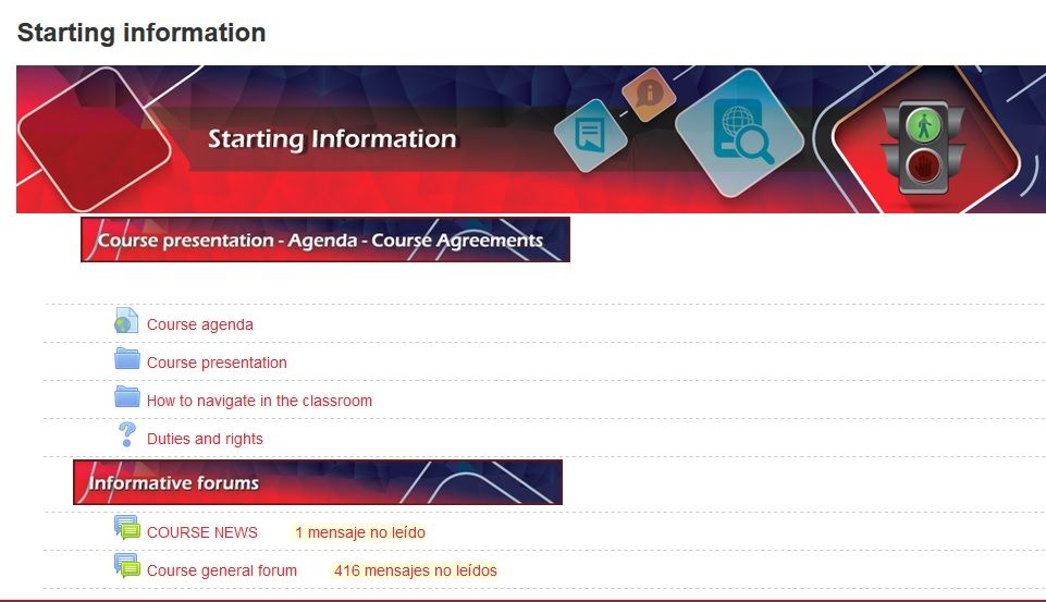 Permite visualizar las actividades que se deben realizar, con el fin de tener una vision general del curso.