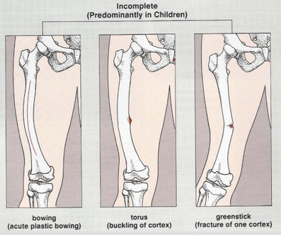 INCOMPLETE (predominantly in children- bones are more bendable)