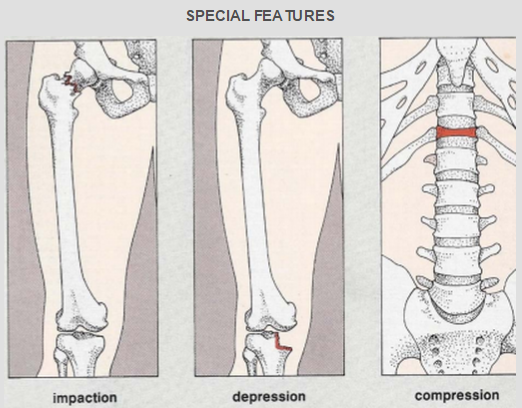IMPACTED fracture- bone breaks into multiple fragments which are driven into each other