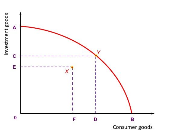 At point Y all resources are being allocated efficently and is showing productive effiecncy