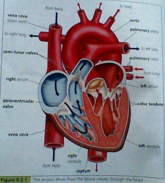 the one-way flow of blood, means that the heart pumps