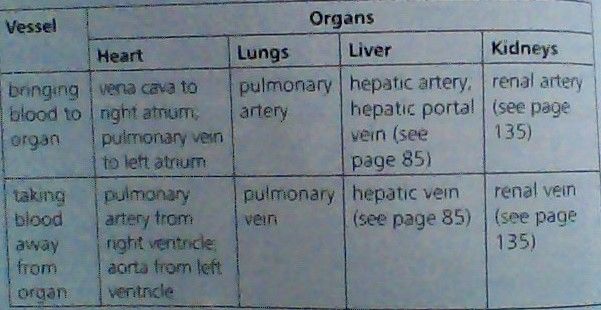 Name the main blood vessels to and