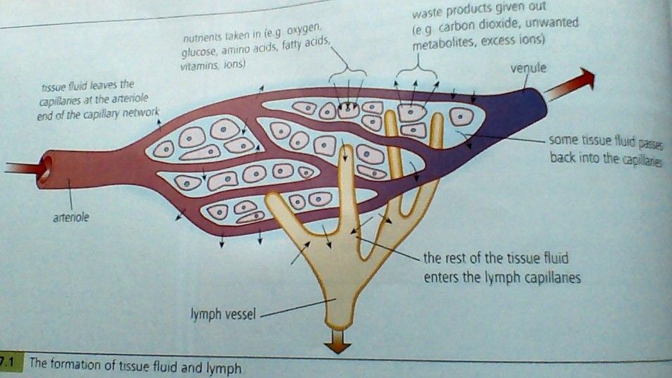 between capillaries and tissue fluid