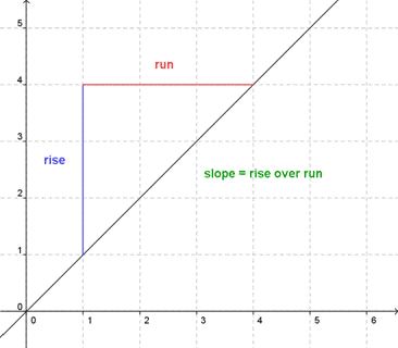 a measure of how one quantity changes with respect to the other it can be determined by calculating rise/run