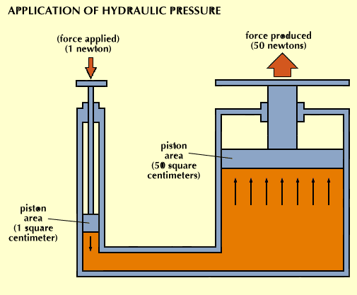 the force exerted by a hydraulics system depends on the force that is exerted on