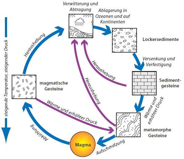 unter dem Einfluß von Hitze oder hohen Druckbedingungen werden ursprüngliche Gesteine derart umgewandelt, dass metamorphe Gesteine entstehen.