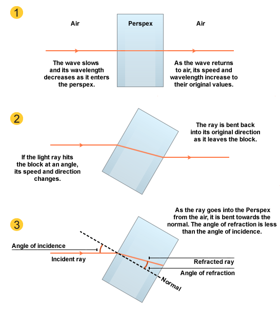 Refraction is when light hits a surface and changes direction. Unless the beam of light hits the object straight on, when this happens the light ray goes straight through and does not get refracted.