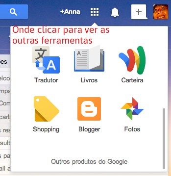 Quando vc clica nos quadradinhos abre-se o menu para selecionar a ferramenta que quer usar.Se desejar ver mais, clique em Mais.As demais ferramentas poderão ser estudadas por cada um em casa. São todas INTUITIVAS, portanto, fáceis de usar.Escolha o Drive: onde vc vai criar pastas e documentos.Com isso, chega de baixar Office pirata ou gastar dinheiro instalando um no seu PC. Vamos adiante!
