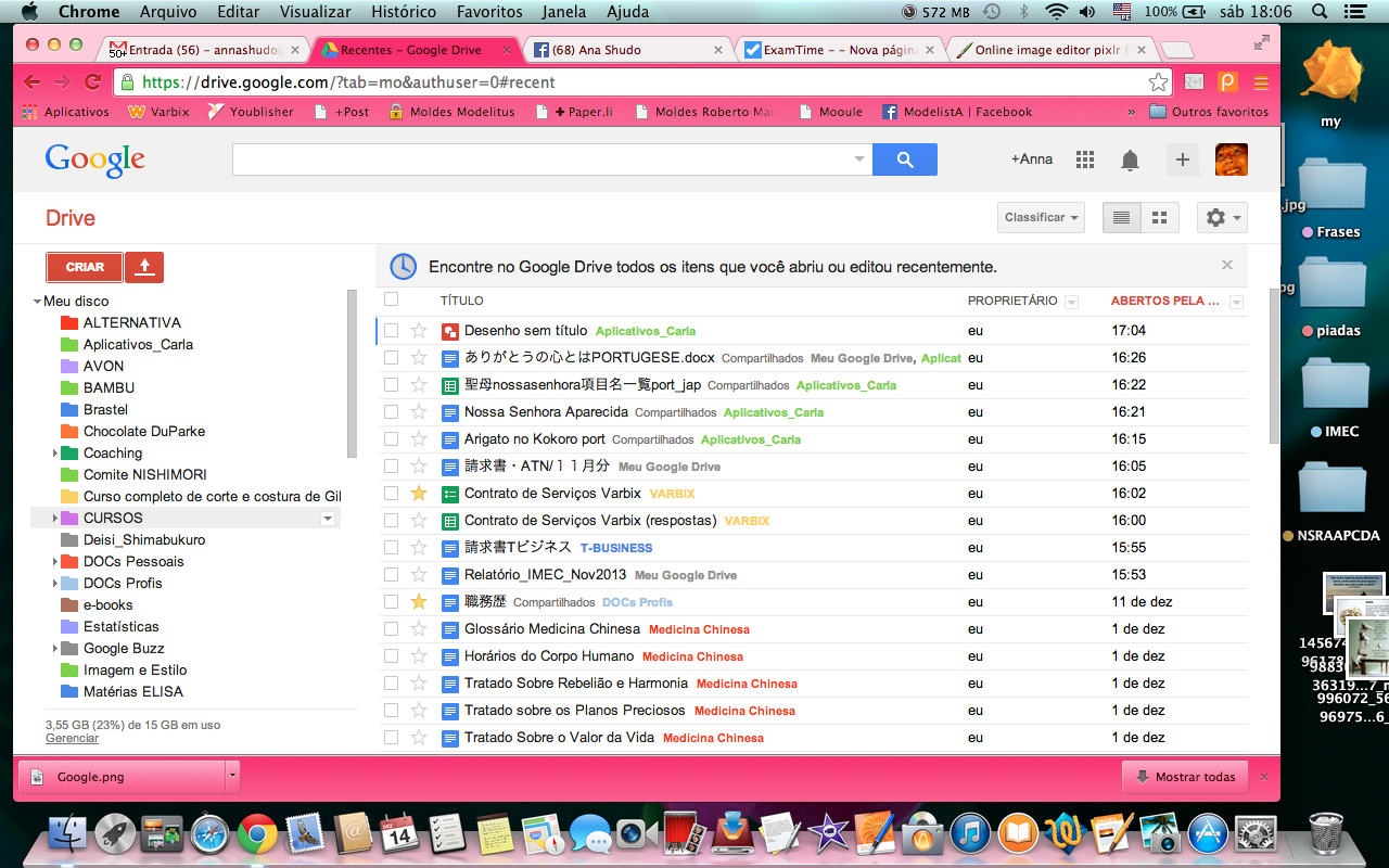No DriveCrie pastas-dê cores para cada pasta-nomeie Crie documentos-Nomeie-Salvamento automático-Compartilhe com edição, com visualização ou com comentário-Se vc tiver documentos Office, pode fazer upload deles-Se vc quiser fazer download de seus documentos em PDF é muito fácilSua vida fica muito mais fácil!!!!