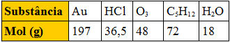 Comparando massas iguais dessas substâncias, a que apresenta maior número de moléculas é:a) Aub) HClc) O3d) C5H10e) H2OResolução: Alternativa 'E'De acordo com a constante de Avogadro, terá maior número de moléculas a substância que tiver a maior quantidade de mols. Considerando que a quantidade de mols pode ser obtida por m/M, concluímos que, em igualdade de massa (m), a substância que tiver menor massa molar (M) terá maior número de moléculas. A que tem menor massa molar é a água (H2O).