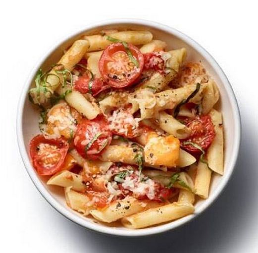 Pasta with No-Cook Tomato Sauce Prep Time: 15 Cook Time: 10Total Time: 30Yield: Serves: 4 (serving size: 2 cups) Ingredients 2 pounds ripe tomatoes, cored, chopped 2 tablespoons extra-virgin olive oil 2 tablespoons minced fresh basil 1 tablespoon minced fresh oregano 1 clove garlic, minced 1 teaspoon kosher salt, plus more to taste 10 ounce short pasta noodles such as cavatelli, penne or rigatoni 1/4 cup grated Parmesan, optional Freshly ground black pepper Preparation 1. In a bowl, toss tomatoes, olive oil, basil, oregano, garlic and salt. Cover and let stand for 30 minutes. 2. Bring a large pot of salted water to a boil. Cook pasta until al dente, about 10 minutes or as package label directs. Drain pasta and place in bowl with tomatoes. Add Parmesan, if desired, and stir to combine. Season with additional salt and pepper. Serve immediately. Nutrition Information Calories per serving: 365g Fat per serving 9g Saturated fat per serving 1gMonounsaturated fat per serving 0.0g Polyunsaturated fat per serving 0.0g Protein per serving 11g Carbohydrates per serving 60gFiber per serving 4g Cholesterol per serving 0.0mg Iron per serving 2mg Sodium per serving 492mg Calcium per serving 32mg