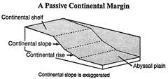 A passive plate margin is where the continental crust changes to oceanic crust.