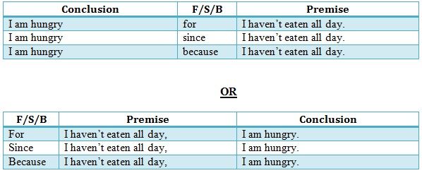All 3 words (For, Since, introduce a Premise where a Conclusion is apart of the same sentence.Examples
