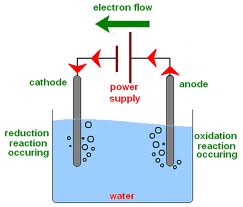 An electrolyte is a substance that conducts eletricity when dissolved in water or when molten. e.g. Acids such as hydrochloric acid and sodium hydroxide, and salts such as sodium chloride.Electrolysis is the breaking up of a substance due to the passage of an electric current through it in aqueous solution or when molten.In electrolysis, electrodes, which are conductors connected to the positive or negative terminals of a d.c. power supply, are dipped into an electrolyte in aqueous solution or in the molten state. + ions (cations) are attracted to the - electrode (cathode), where they receive electrons and are reduced. - ions (anions) are attracted to the + electrode (anode), where they lose electrons and are oxidised.OXIDATION OCCURS AT THE ANODE, AND REDUCTION OCCURS AT THE CATHODE.