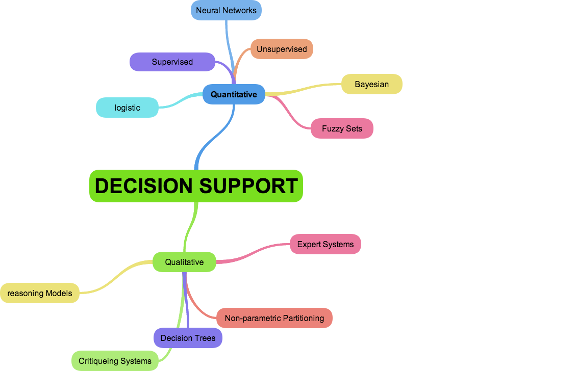 Quantitative Decision Support Models = based on well defined statistical models , uses training sets of data, features are selected using statistical methods, prior proabilities are incorporated into the statistical models - i.e. BAYE'S RULE