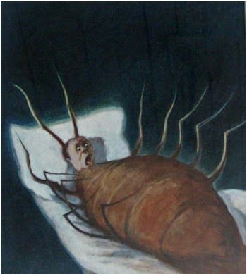 Erster TeilGregor Samsa arbeitet auf Wunsch seines strengen Vaters als Vertreter und hält mit seinem Einkommen sich, seine Schwester und die Eltern über Wasser. Alle Vier wohnen auch zusammen und so kann es geschehen, dass seine Eltern eines Morgens seltsame Geräusche aus Gregors Zimmer wahrnehmen. Hinter der Tür erwacht der Vertreter gerade aus dem Schlaf und muss feststellen, dass er sich während der Nacht in etwas verwandelt hat, das von Kafka als »Ungeziefer« beschrieben wird. Da sich der verwandelte Gregor nur minimal bewegen kann, muss er nun die meiste Zeit in seinem Bett verbringen, wo er beginnt, über sein bisheriges Leben nachzudenken. Dabei wird ihm schnell die Unzulänglichkeit seiner Existenz bewusst, da er seine Arbeit nur wegen der Schulden seines Vaters ausübt. Als einziger Ernährer der Familie kann er aber nicht kündigen und sein Leben in die eigenen Hände nehmen. Frustriert muss Gregor die zweifache Abhängigkeit (zu seiner Familie und zu seiner Arbeit) zur Kenntnis nehmen.