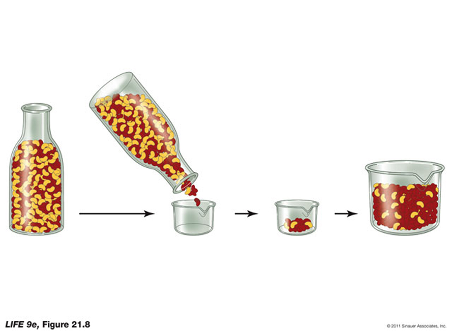 e.g. New Zealand hares are all descendants of six individuals that were introduced from Australia. Although they multiplied greatly, their gene pool contained fewer alleles than the parent population.