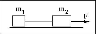 Two masses, m1 = 2.26 kg and m2 = 6.03 kg are on a horizontal frictionless surface and they are connected together with a rope as shown in the figure.
