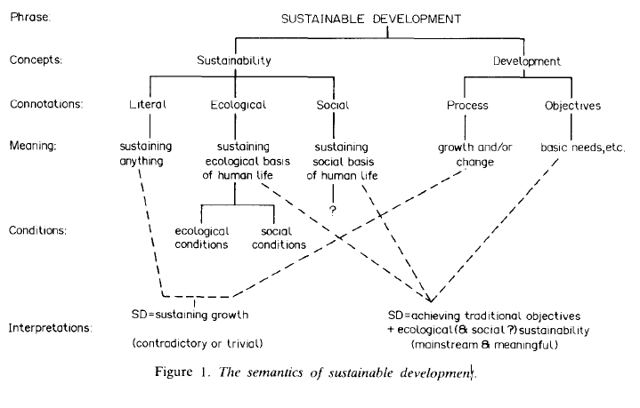 Lele (1991): In 1980 the international union for the conservation of nature coined sustainable development as a term, focusing on ecological preservation (diversity, living resources etc.), but did not deal with economic and political order. I.E. it dealt with the environment but not development. One current view is that SD is a process with ecological sustainability as a key objective. Repetto 1986 tried to express SD as: 1] scientific realities, 2] consensus on ethical principles and 3]consideration of long term self-interest. Bartelmus 1986: environmental degradation impoverishes those dependent directly on the natural environment for survival (subsidence farming/agriculture). Visa versa development must be mindful of this as the two are mutually reinforcing long term. SD must tackle these areas: 1] environmental degradation as is ultimately affects the entire population not just the poor, even if at different rates/times. 2] Traditional development including providing basic needs, productivity of resources and economic gain. 3] Participatory for the population. Weaknesses of SD theory include the fact that it has chosen to isolate certain factors but ignore others, furthermore conceptual inconsistencies exist internally on poverty, development and environment especially on how they are linked as a system.