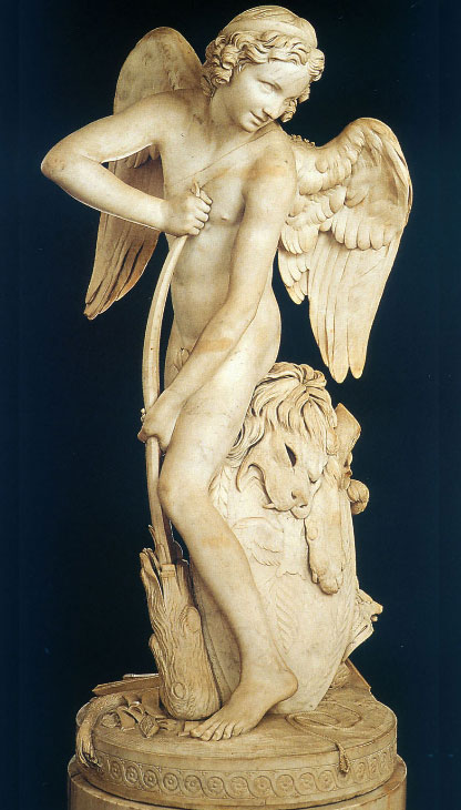 Rococo sculptures were often small, and represented joyful and mythological themes. (Illustration: Cupid, by Edmé Bouchardon, 1746).