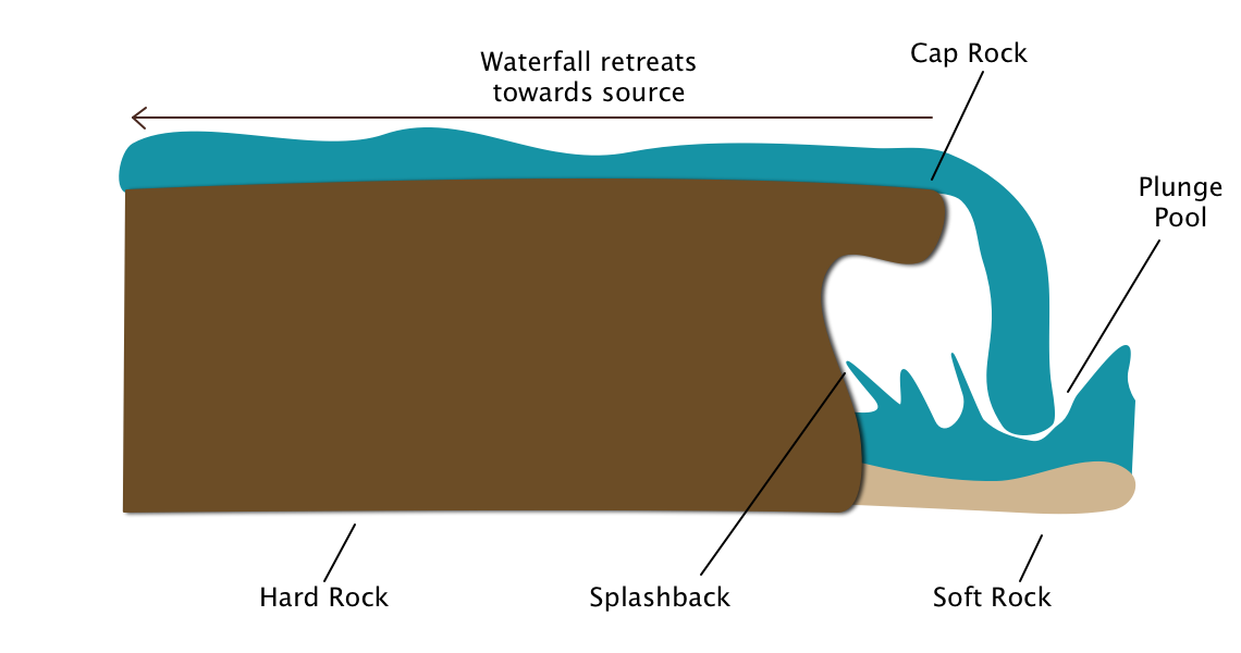 Although formed in similar ways, waterfalls are more dramatic features, as a result of: A band of resistant (hard) rock laying along the course of the river. The edge of a plateau
