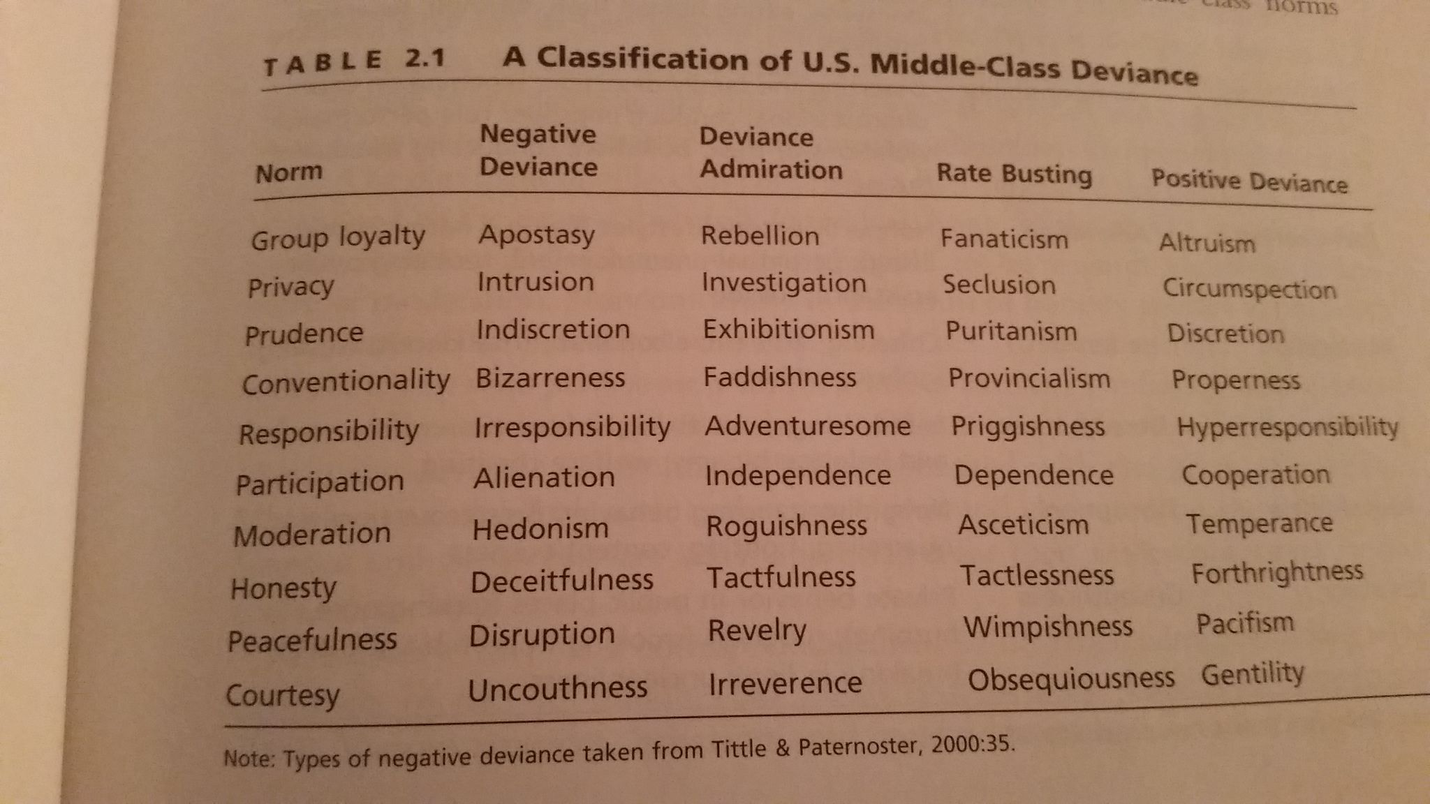 Applying an Integrated Typology of Deviance to Middle-Class Norms