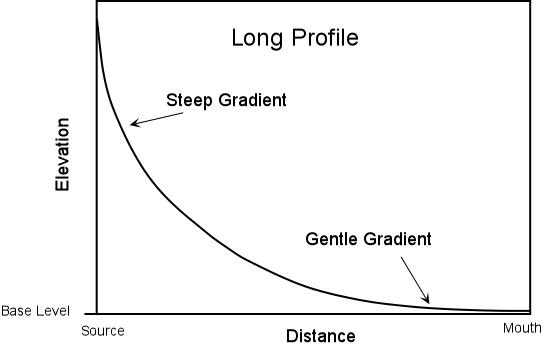 The cross profile of a river is a line showing what it would be like to walk from one side of a valley, across the channel and up the other side