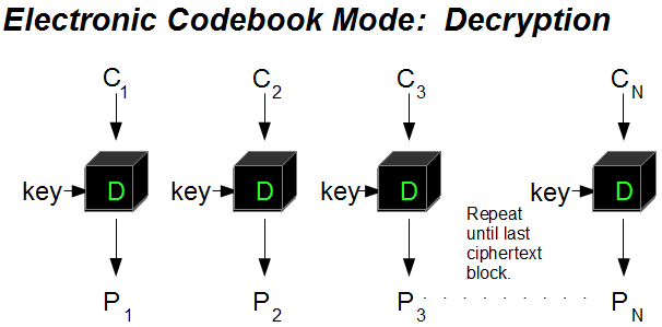 Decryption key used with decryption algorithm to decrypt each block of plaintext