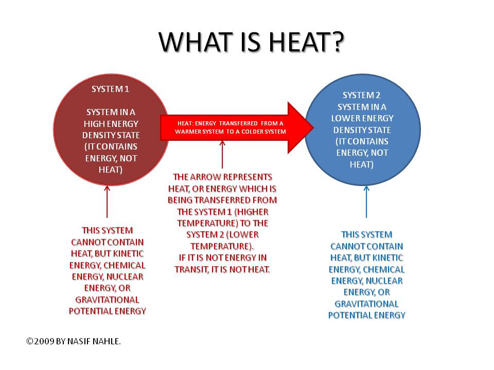 In physics and chemistry, especially in thermodynamics, heat refers to a process of transfer of energy between a system and its surroundings other than by work or transfer of matter.It is measured as the quantity of energy that the process transferred. Familiar examples involve the spontaneous transfer of energy as heat from a body at a higher temperature to an adjacent one one at a lower temperature, often narrowing their temperature difference. The transfer can occur by the mechanisms of conduction, radiation, and convective circulation.
