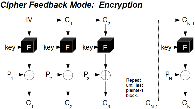 Variant of cipher feedback mode: Reduced CFB uses 8 bit blocks good for small transfers (such as character-by-character encryption)