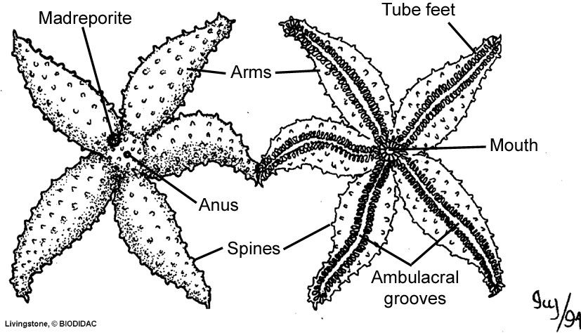General Characteristics: Radial Body Symmetry Aboral Suface Contains: Central disc, Anus, and Madreportie