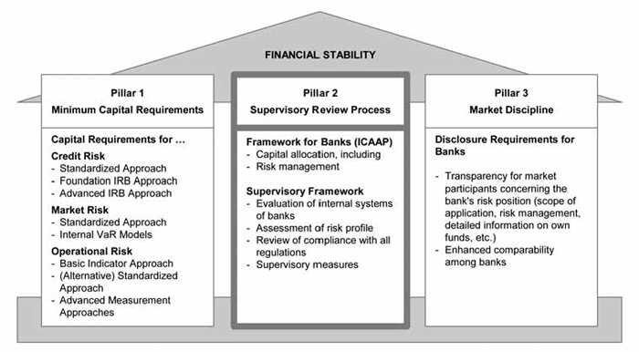 Basel II Three Pillars Approach: In response to the criticism of Basel I and its amendment, a number of changes were made More option for banks to determine its capital charge for risk improved credit risk weighting Recognition of operational risk Subject to National supervisory approval, banks will be allowed to use their own internal rating models as a measurement of risk Introduction of "Supervisory" and "Market Disciple" pillars