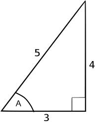 the cosine of angle A (CosA) is 0.6, because the ratio of the opposite side (3) to the hypotenuse (5) is 3/5.