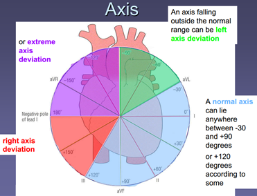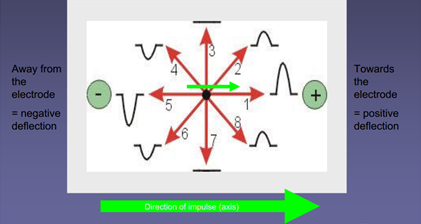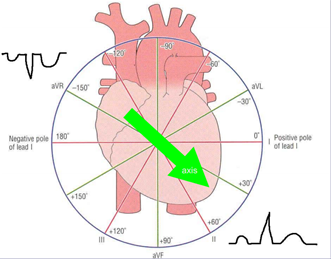 The electrocardiogram and mean cardiac vector (23/09/13 prac) Excitation-contraction coupling forms the basis of the importance of the ECG. Individual cells (primarily in the sinoatrial node) can generate action potentials which are propagated directly and rapidly between cardiac cells via intercalated discs (gap junctions). The action potential a cell undergoes is accompanied by an influx of Ca2+ ions, which results in contraction by the same sliding filament mechanism as skeletal muscle. This means that examining the electrical activity of the heart can tell us a lot about its mechanical effectiveness. Even though the electrical activity of individual cardiac muscle cells is tiny, the fact that millions of them are undergoing action potentials in a co-ordinated fashion (a functional syncytium) means that there are fairly large electrical changes occurring in the chest cavity. These can be recorded as voltages on the surface of the body between suitably placed electrodes. What are electrocardiograms used for? An ECG shows how fast your heart is beating (e.g. may show brachycardia in hypothermia), whether the rhythm of your heartbeat is steady or irregular (this could suggest that a part of the heart is not conducting properly, or that the sinoatrial node is out of rhythm), and the strength and timing of electrical signals as they pass through the heart (this could help locate areas of decreased function, e.g. in a myocardial infarction). P – depolarising electrical activity in the atria (atrial systole) QRS – depolarising electrical activity in the ventricles (ventricular systole) T – repolarising electrical activity in the ventricles (ventricular diastole) We attached 3 leads (each a pair of recording electrodes) to each subject (1: right arm and left arm; 2: right arm and left leg; 3: left arm and right leg), as well as an ‘earth/reference’ electrode to the right leg, and recorded 5 beats at 25 mm/s for both normal, quiet breathing and for breath holding. This meant that: the right arm had 2 negative electrodes, the left arm had 1 negative and 1 positive electrode, and the left leg had 2 positive electrodes. Einthoven’s triangle is used to calculate the mean cardiac vector (the overall direction and magnitude of the heart’s electrical activity during systole). If an electrical impulse travels towards a positive electrode, there will be a positive (upwards) deflection of the trace from the baseline (image 1). If an electrical impulse travels towards a negative electrode, there will be a negative (downwards) deflection of the trace from the baseline. Further, if an electrical impulse travels towards an electrode there will be a positive deflection from the baseline, and if an electrical impulse travels away from an electrode there will be a positive deflection from the baseline (image 2). SO the deflections from each electrode tell us which angle of the heart we are ‘looking’ at (given that we know the electrical activity starts in the sinoatrial node of the right atrium and travels through the atria and then the ventricles. We measured the maximum positive and negative deflections of the QRS complex (as ventricular depolarisation is of large magnitude and is highly directional) for each lead in mm, and then calculated the overall mean activity during the QRS complex (e.g. +8mm plus -3mm = +5mm). We then converted this to mV (1 mV = 10mm deflection) and plotted these values on Einthoven’s equilateral triangle. Zero degrees and the plus and minus directions were indicated on the sheet. We drew perpendicular lines through the mV value for each lead and these lines joined up to form a small triangle. The angle between the centre point of this triangle and the 0° point was the vector angle (normal range = -30° and +90°). The size of the vector was the distance between the centre of Einthoven’s triangle, and the centre of the triangle produced by drawing the perpendicular lines to the voltage values for each lead. Class data: · Using an unpaired T-test, there was no evidence for a difference in size or angle of the mean cardiac vector in males and females. However, there was strong evidence for a difference in mean height of a person and whether they were male or female. The lack of difference for the mean cardiac vector may have been because the diagram of Einthoven’s triangle was not particularly accurate. · Using a paired T-test, there was no evidence for a difference between normal vector size and breath-holding vector size, and normal vector angle and breath-holding vector angle. One would expect the vector angle to change as our hearts deviate to the side during inhalation, so the diagram used to work out the angles is not likely to have been accurate enough. (My data: normal vector angle = +78°, breath-holding vector angle = +85°). An axis between -30° and -90° is a left axis deviation, which can be caused by ventricular tachycardia, inferior myocardial infarction, left ventricular hypertrophy, or left anterior hemiblock. An axis between +120° and +180° is a right axis deviation, which can be caused by right ventricular hypertrophy (e.g. in fibrosis of lung tissue as more blood has to be pumped to be oxygenated and it is against more resistance), anterolateral myocardial infarction, or left posterior hemiblock. An axis between -90° and +180° is an extreme axis deviation, which can be caused by ventricular tachycardia, emphysema, and a pacemaker (image 3).