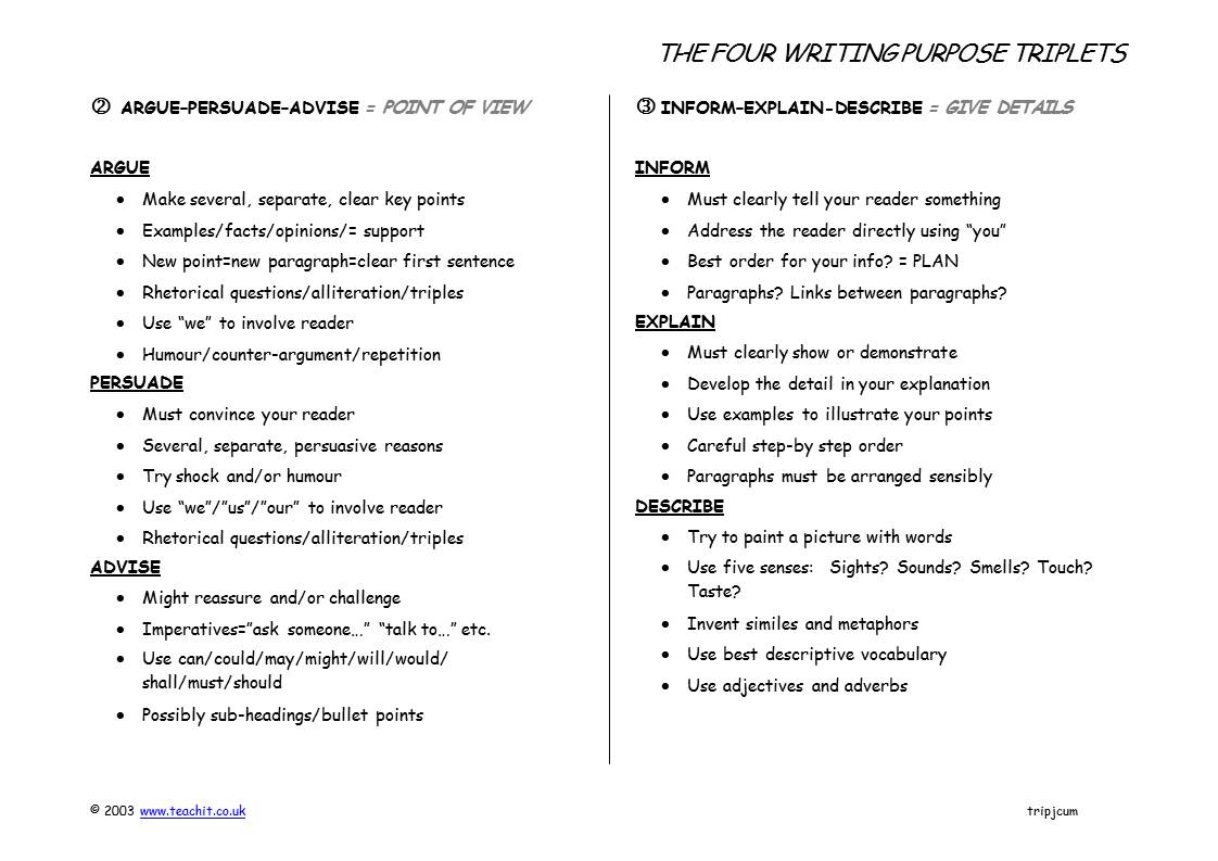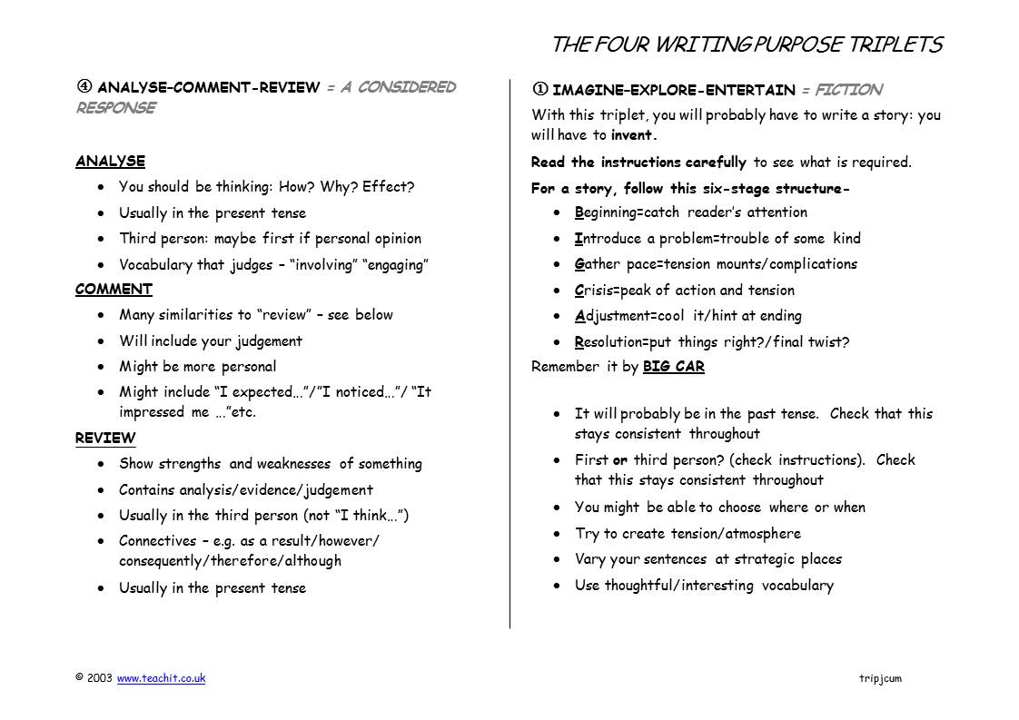 APA: argue-persuade-advise to give point of view IED: inform-explain-describe to give detail ACR: analyse-comment-review to give a considered response IEE: imagine-explore-entertain for fictional writing