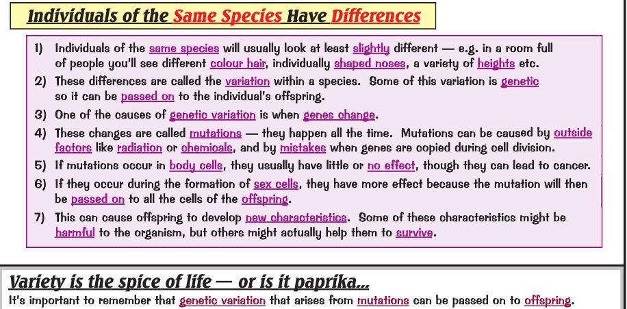 Adaptation and Variation A Species is a group of organisms that can breed together to produce fertile offspring. Species adapt to their environments- Animal and plant species survive in many different environments. They can do this because they have adapted to their environment. Adaptations make individuals of a species more likely to survive and go on to produce offspring this then makes it more likely that the whole species will continue to exist in its environment. Cacti have a rounded shape giving them a small surface area compared to their volume to reduce water loss. They've got a thick waxy layer called a cuticle to further reduce water loss. They store water in their thick stem which they can use when not a lot is around They have shallow but very extensive roots which ensures water is absorbed quickly over a large area. Fish have gills that extract oxygen from water for respiration. They have tail fins with a surface area to help propel them through the water. They use their other fins to keep them stable as they move. Fish have an organ called a swim bladder (or air bladder). They can adjust the amount of gas in their swim bladder to change their depth in the water without having to use any energy.