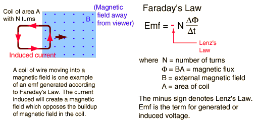 Lenz's Law The direction of the induced emf always opposes the charge causing it By combining Lenz's law with Faraday's law we get E = - dΦ/dt
