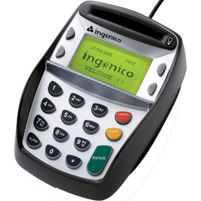 Chip and PIN ReaderThe chip in the card is read in a slot, and there's a keypad for entering the PIN (Personal Identification Number). Card details are read from the card and checked using the PIN entered by the purchaser when using a debit or credit card.