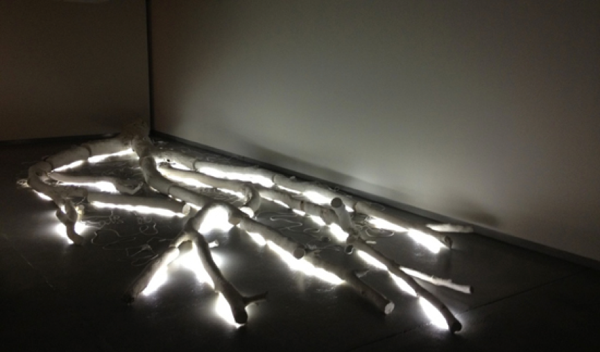 Quotes "I am challenging western romanticism and perspective, and critiquing the grand, colonial narratives of western art that have been imposed on an Australian setting to create a new Aboriginal framework." “Jones’s art revels in simplicity but comes with layers of meaning. ‘Untitled (illuminated tree)’ is made up of pieces of wood representing a fallen tree, and is lit with fluorescent tubes like those bought at hardware stores. It’s a visual narrative of the Murray-Darling river system and places the spotlight on issues brought about by the colonisation of the landscape through which the rivers flow. Jones’ never shies away from politics and this piece provides an Indigenous perspective by seeking to redress romantic colonial (white) depictions of Australia in art history, where the siting of a tall tree would often take the foreground of a picture. By reworking subject matter and inverting meaning, the artist is suggesting that such art could more appropriately be considered propaganda.” -Sharne Wolff “Jonathan Jones' untitled (illuminated tree) reveals an intense engagement with both the representational traditions and broad political and cultural interplay between settler and indigenous Australian cultures. It's a display of mastery but also independence of the symbolism of the sort of Fine Art/High Art vocabulary that has only recently acknowledged Australian Aboriginal art in a way that's not straight up ethnographic. It's a reinforcement of the (longevity and contemporary expressive force of the modes of symbolic expression existing in Aboriginal art.” – Bethany Small