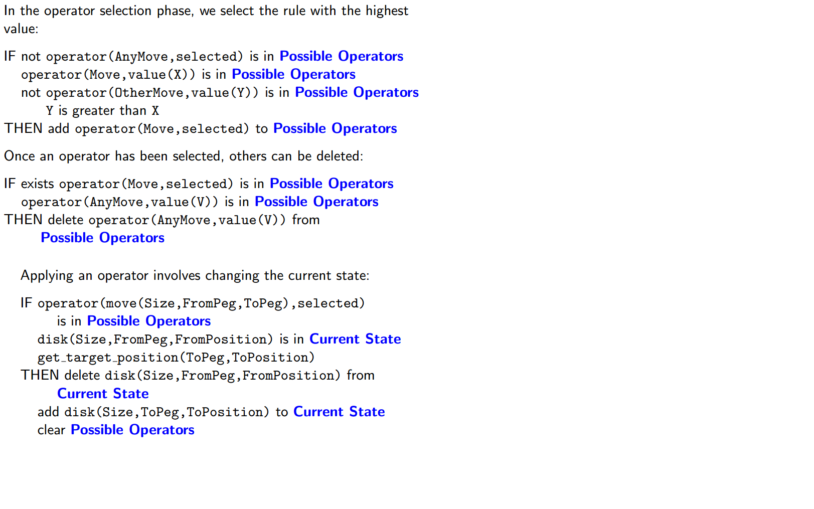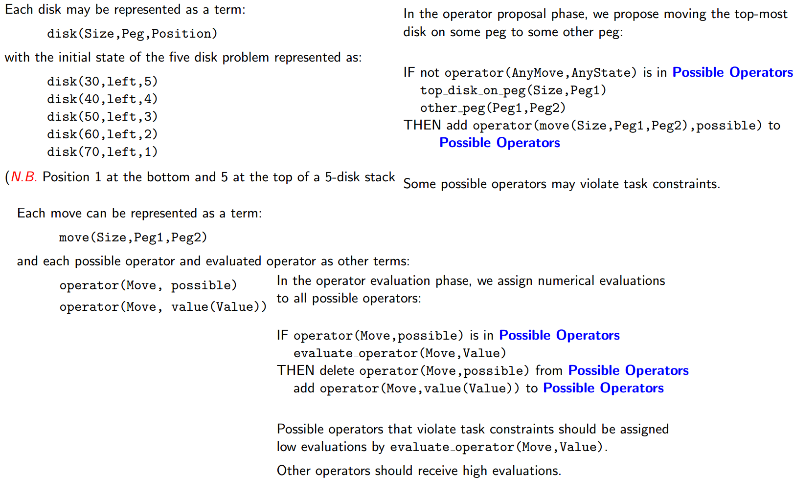 Model needs to give move in which the small disk is returned to the peg it was on two moves previously receive low evaluations. Rename Previous Move to Previous Moves and set its capacity to 2. OnExccess is Oldest.Represent the previous move in PreviousMoves by a proposition of the form history(Move, -1) and the move prior to that by a proposition of the form history(Move, -2)Need to update indices each time a move is made.