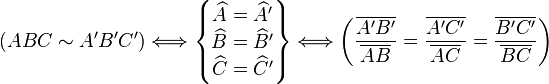 Semajanza de Triangulos.Dos triángulos son semejantes si las razones de los lados correspondientes son congruentes.